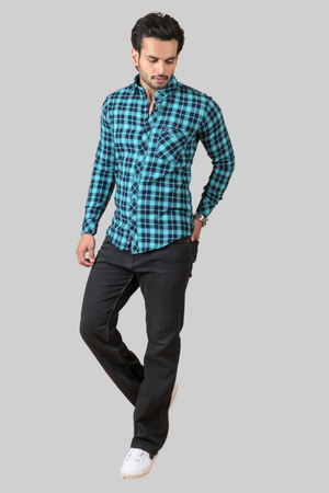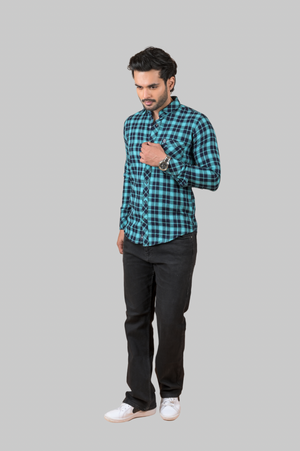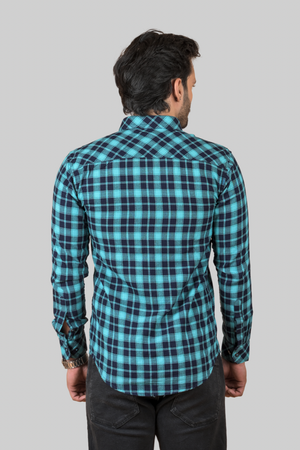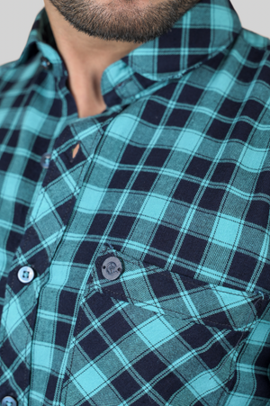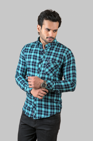 dark blue check shirt Looks great with a jacket. The slim silhouette evokes a mature appeal. The smooth Touch of the Cotton Fabrics brings a softness & luxurious feel to your style. The pleasant touch of the fabric enhances the style & the appearance of the suit with a Cotton that offers an impeccable look for any occasion. All garments go through quality tests before being delivered.