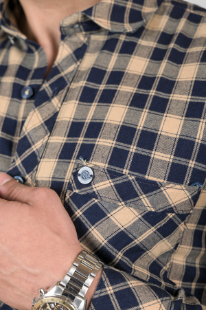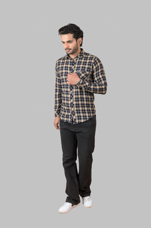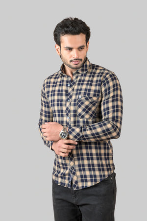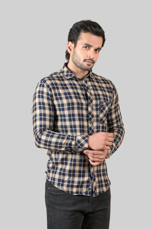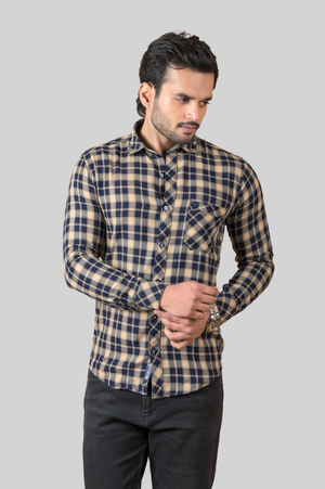 Brown Indigo Check Shirt For Men