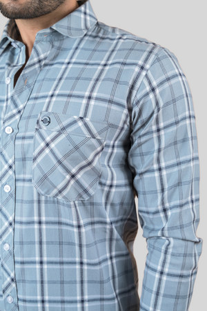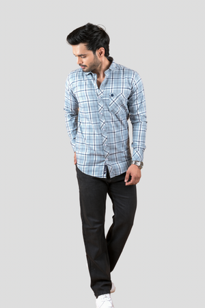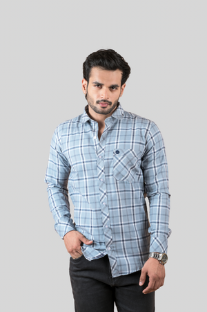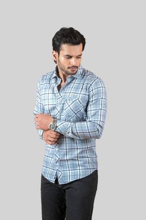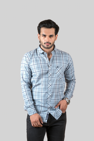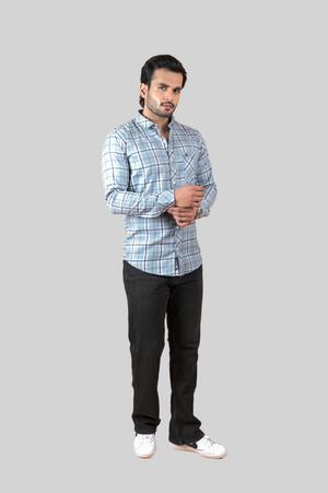 dark blue check shirt Looks great with a jacket. The slim silhouette evokes a mature appeal. The smooth Touch of the Cotton Fabrics brings a softness & luxurious feel to your style. The pleasant touch of the fabric enhances the style & the appearance of the suit with a Cotton that offers an impeccable look for any occasion. All garments go through quality tests before being delivered.