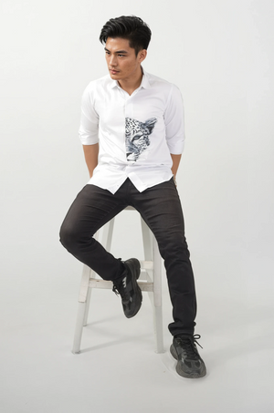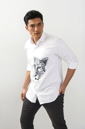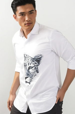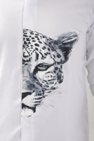 Step into the room and command attention with the Alpha Leopard Printed Shirt. This isn't just a white button-downāit's a statement. Crafted from crisp, breathable fabric, its clean, modern silhouette provides a sharp, slim-fit look that easily transitions from a high-end night out to a confident, casual weekend.