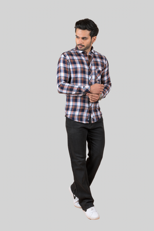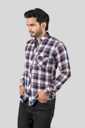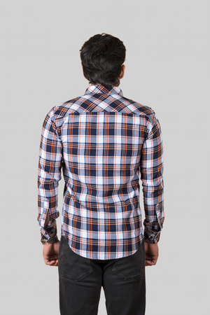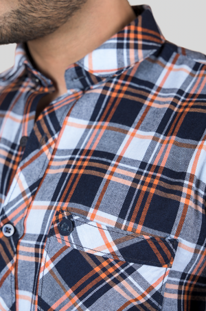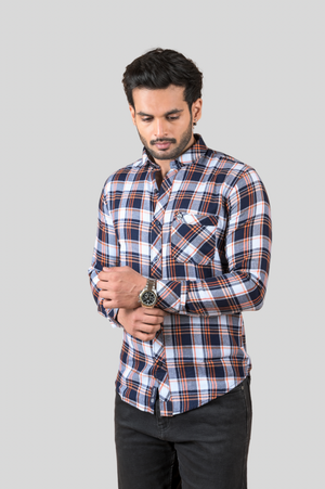 dark blue check shirt Looks great with a jacket. The slim silhouette evokes a mature appeal. The smooth Touch of the Cotton Fabrics brings a softness & luxurious feel to your style. The pleasant touch of the fabric enhances the style & the appearance of the suit with a Cotton that offers an impeccable look for any occasion. All garments go through quality tests before being delivered.