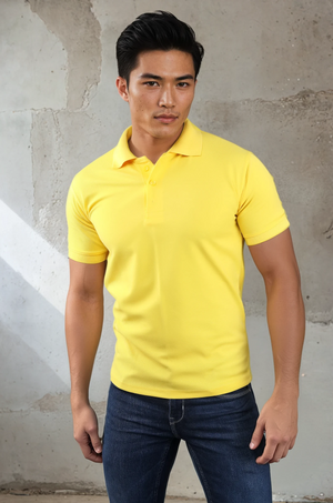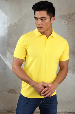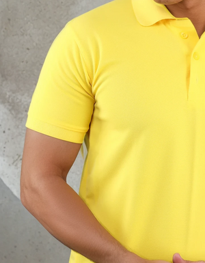 - Lemon solid Polo T shirts, has a polo collar, and short sleeves