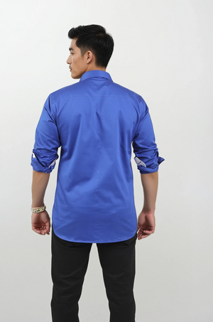 Command attention with our Royal Blue Jack of Spades Emblem Shirt, a true statement piece crafted for the modern man with a taste for bold sophistication. Made from a premium silk-touch fabric, it offers an opulent sheen and a smooth, comfortable feel against the skin. The striking Jack of Spades motif on the chest adds an avant-garde edge, transforming a classic shirt silhouette into an artistic expression of power and style.