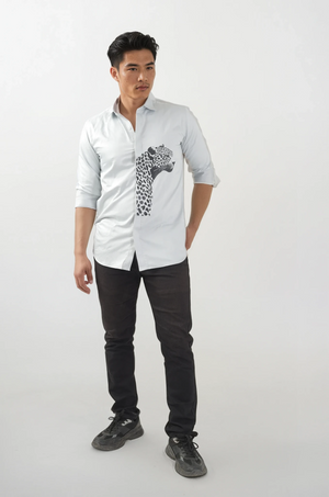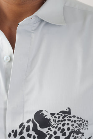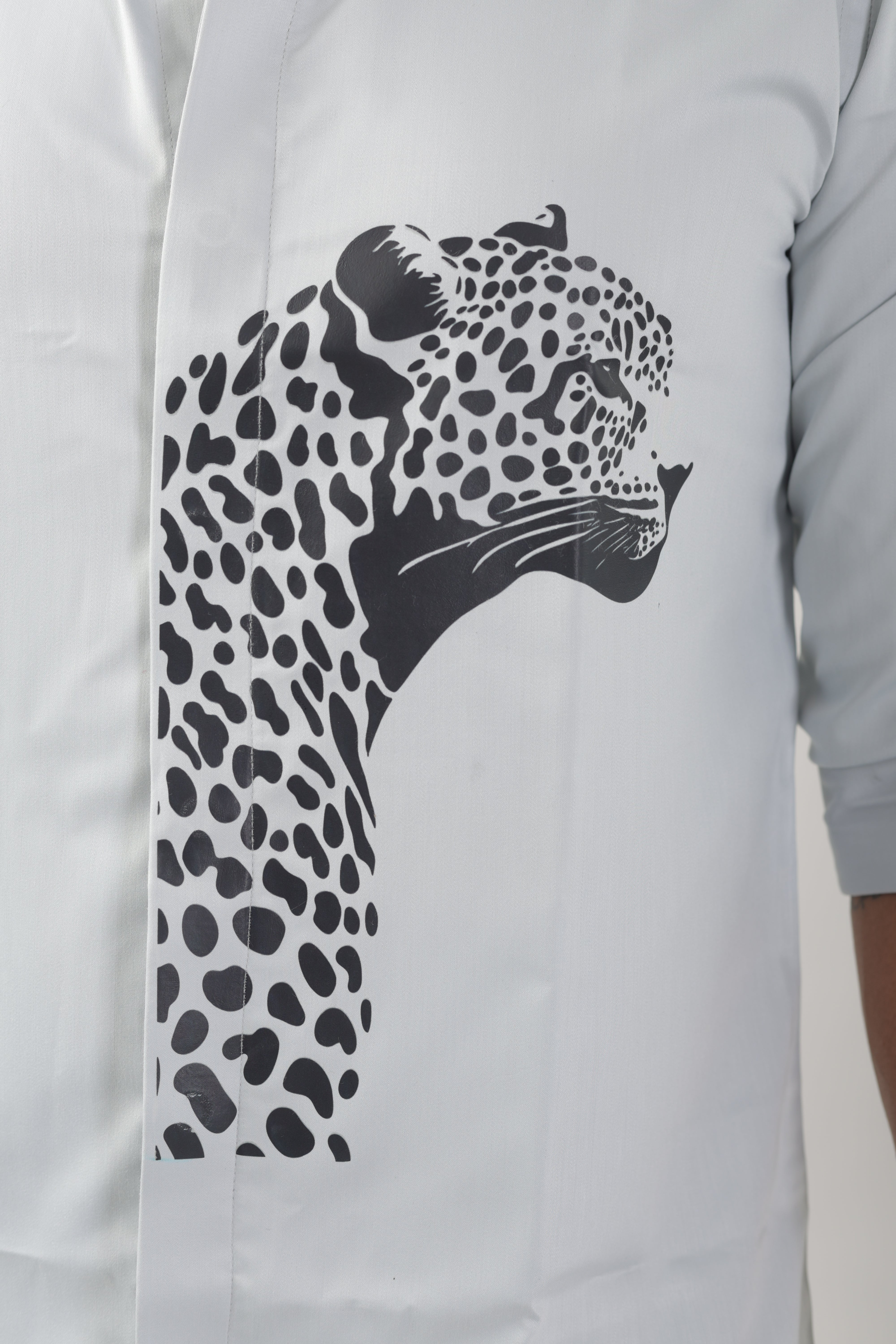 Step into effortless sophistication with our Light Grey Leopard Print Shirt, designed for men who like to keep it classy with a bold edge.