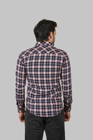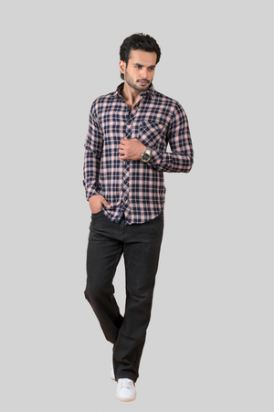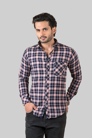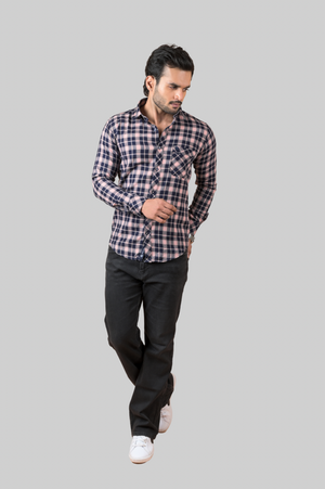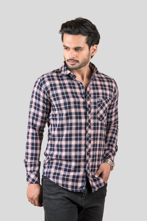dark blue check shirt Looks great with a jacket. The slim silhouette evokes a mature appeal. The smooth Touch of the Cotton Fabrics brings a softness & luxurious feel to your style. The pleasant touch of the fabric enhances the style & the appearance of the suit with a Cotton that offers an impeccable look for any occasion. All garments go through quality tests before being delivered.