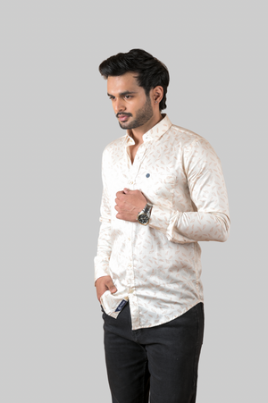 Indian Threads brings this high grade Giza Cotton Printed Shirts for Men. Because Giza is the most highly graded cotton fiber of the Egyptian cotton. It is the longest, thinnest, strongest and most has the best uniformity index of 88.5 of the 'Giza' grade cottons. Meaning the irregularities are minimal, therefore producing a very smooth and silky look and feel when woven into fabric.