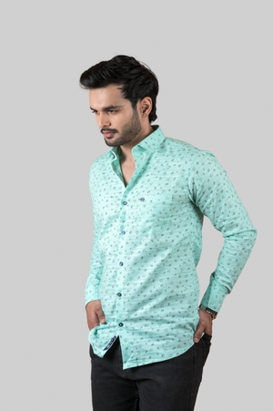 Indian Threads brings this high grade Twill Cotton Printed Shirts for Men. Because it is the most highly graded cotton fiber of the Egyptian cotton. It is the longest, thinnest, strongest and most has the best uniformity index of 88.5 of the 'Giza' grade cottons. Meaning the irregularities are minimal, therefore producing a very smooth and silky look and feel when woven into fabric.