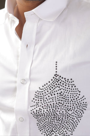 The Nocturne Quill Hand-Embroidered White Shirt