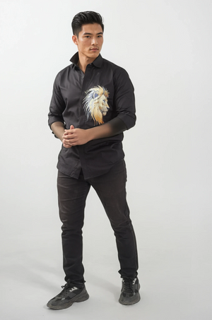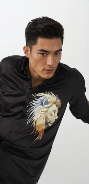 Step into any room with unforgettable confidence in The Regal Roar shirt. This piece effortlessly marries classy sophistication with bold, eye-catching style, making it the ultimate statement garment for the modern man.